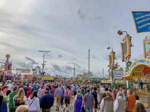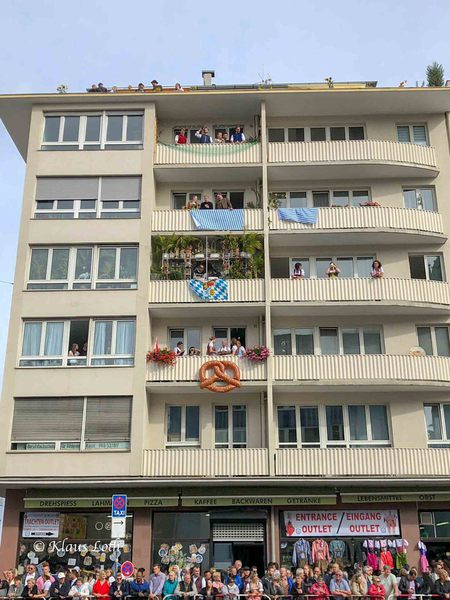 Der Weg führt vorbei an der Strecke wo der große Festumzug gleich entlangkommt. Tausende Menschen warten schon, und einzelne Häuser sind geschmückt wir am Rosenmontagszug. Wir wollen nicht zuschauen, sondern vor der großen Welle auf das Wiesngelände kommen. Schaffen wir auch, aber nichts desto trotz ist es dort schon gefühlt total voll. Bei schönstem Herbstwetter schlendern wir über das Oktoberfest und schauen uns mal an, wie die Stimmung kurz vor der offiziellen Eröffnung ist.